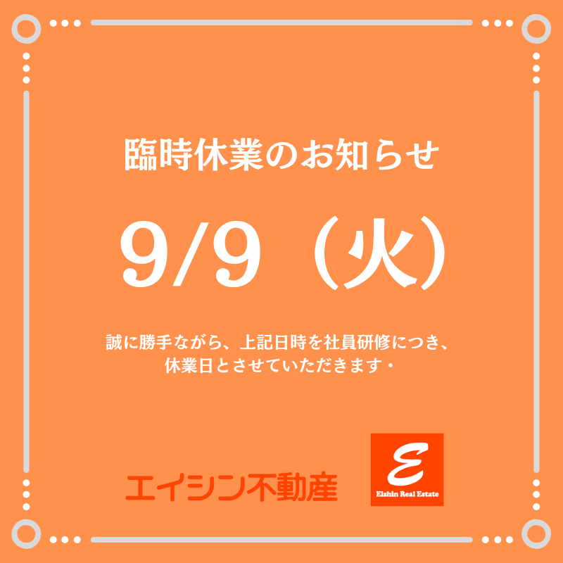 9月9日(火):休業