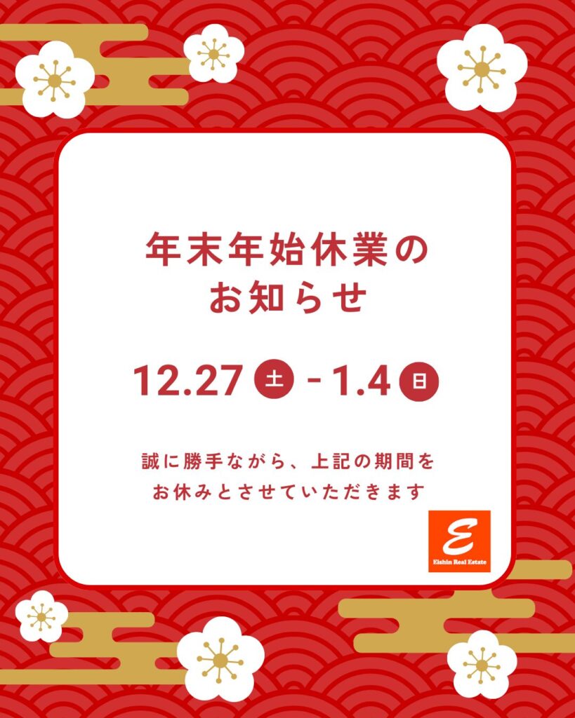 2025年12月27日(土)〜2026年1月4日(日):休業